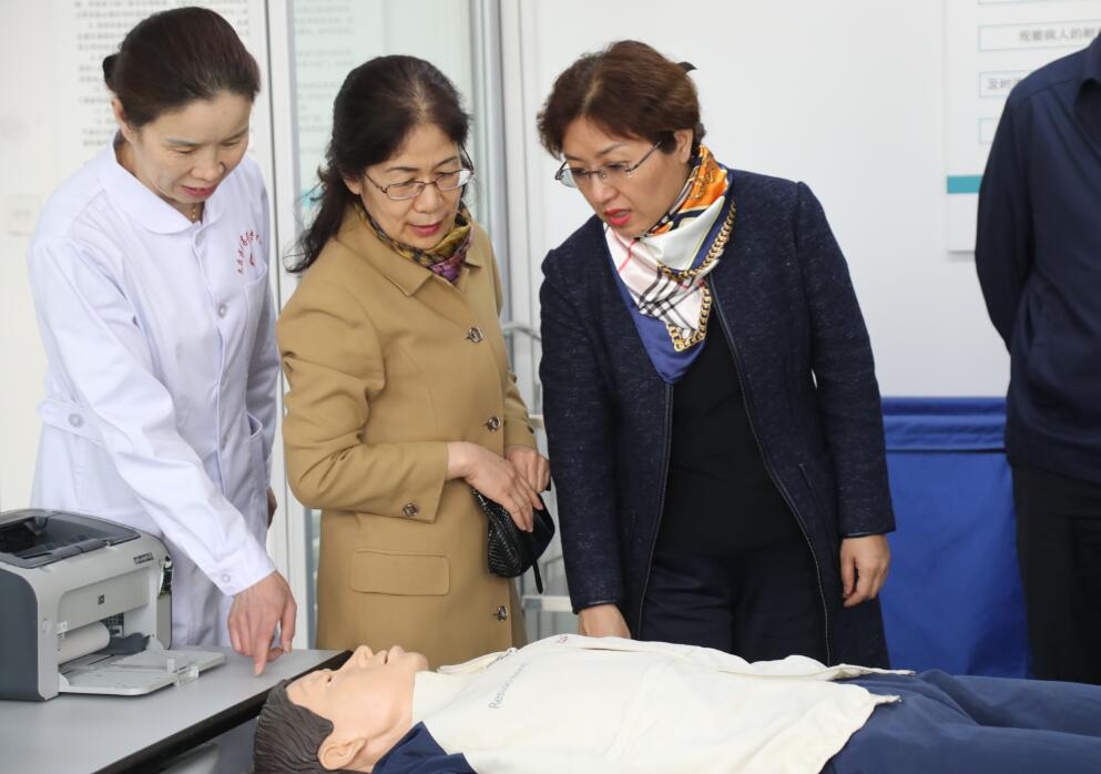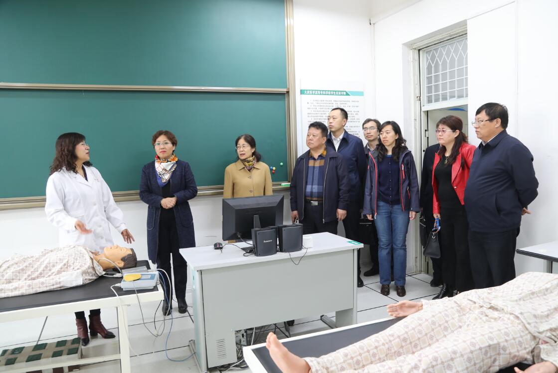 调研组通过实地考察、观看学校发展历程影像资料,全面了解了学校开展职业教育的情况。在观看了反映9游体育官方网站发展的录像片后,何旭辉校长详细介绍了学校的基本情况、开展现代职业教育的主要工作与经验体会、“(技能+特长)×态度”人才培养模式的构建及实施情况。随后,调研组一行考察了学校的护理、临床医学、康复医学等实训中心,并参观了校园环境。