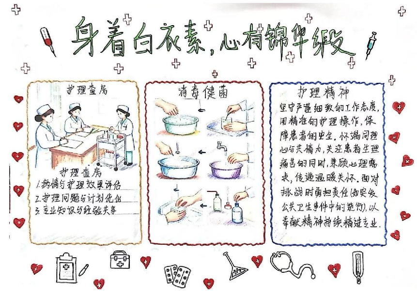 为弘扬南丁格尔精神,强化护理专业学生的职业认同感,护理系团总支10月开展“身着白素衣,心有锦华锻”我心中最美护士形象绘创大赛,护理系2024、2025级全体学生参加。