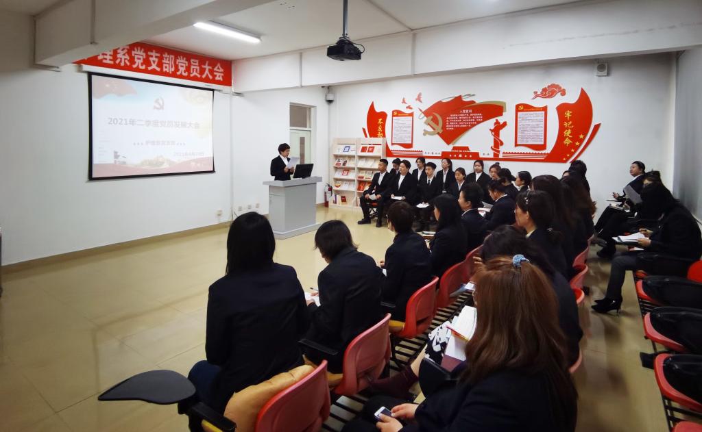 2021年4月28日下午13:40,护理系党支部2021年第二季度党员发展大会在党建工作室召开。会议由党支部书记李淑文同志主持。支部正式党员、预备党员和发展对象共计31人参加了大会。大会讨论并投票表决了郑晴、金鑫、卢亚欣等9名发展对象的入党问题。
