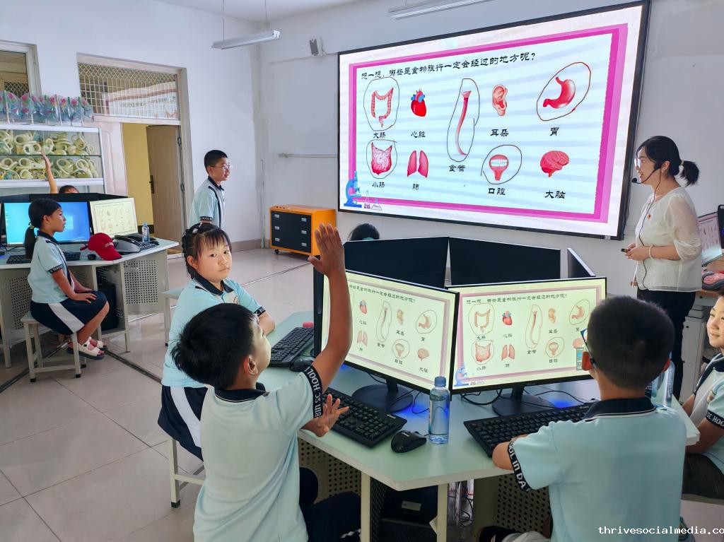 在“消化漫游VR体验”系统前,学生们戴上VR头盔,化身为“食物小精灵”,在消化系统中自由穿梭。从口腔出发,经过咽、食管,再到胃、小肠和大肠,一路感受着消化系统的神奇运作。语音、文字和动画的巧妙配合,让学生们轻松掌握了消化系统的结构和消化过程中消化液的作用。完成这一精彩体验后,学生们纷纷来到工作人员处,自豪地领取了第一枚小印章。