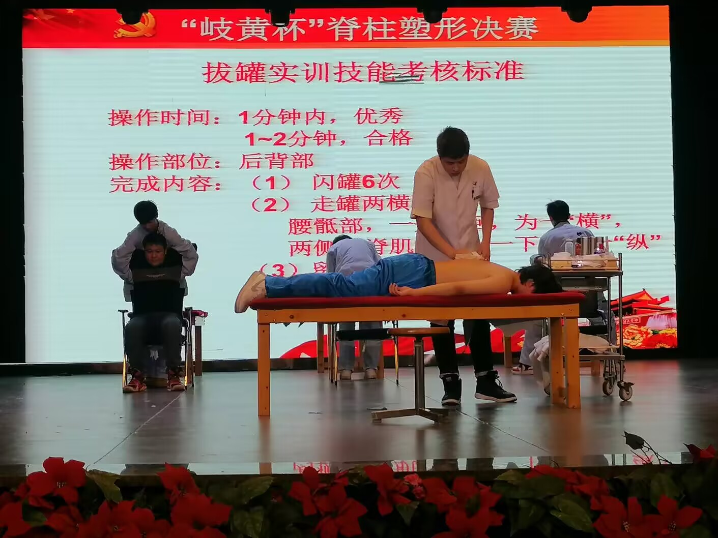 为推动党建工作与中心工作深度融合,检验教师党员学习贯彻习近平新时代中国特色社会主义思想理论的现实成效,12月15日下午,康复医学系首届“岐黄杯”圆肩驼背脊柱塑形技能大赛决赛,在我校大学生活动中心成功举办。比赛由康复医学系党总支书记张淑彦策划,针灸推拿教研室王健老师组织实施,系部领导、老师、学生共计300多人现场观摩。