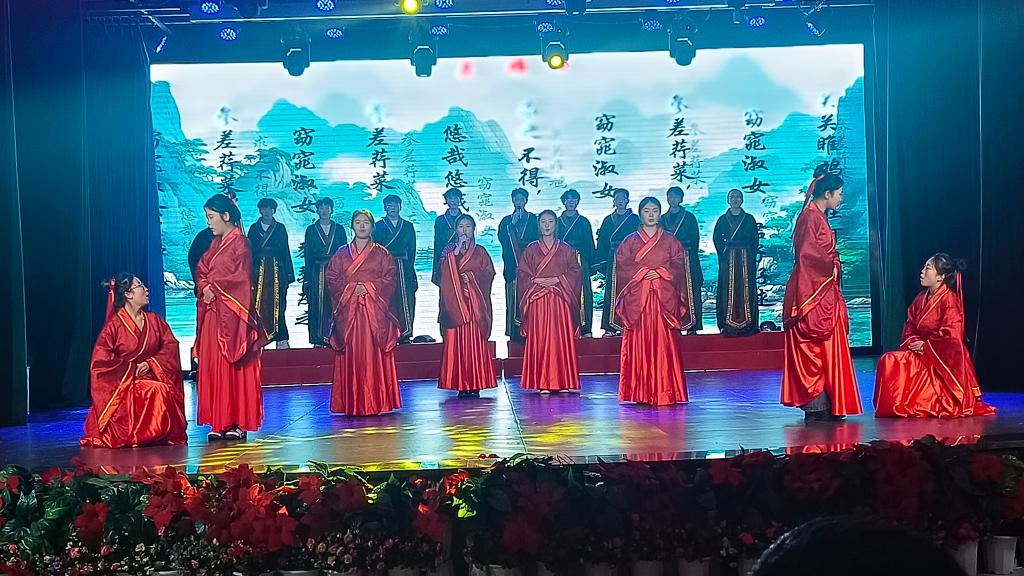 41名学子身着古装,走上舞台,朗诵《诗经》、《黄帝内经》、《经典咏诵》节目不仅为技能大赛画上完美句号,更为参与者留下难忘记忆,让人们深刻感受到中医文化的博大精深与源远流长,激励着更多学子投身于中医事业,为传承与发展这一宝贵文化遗产贡献力量。