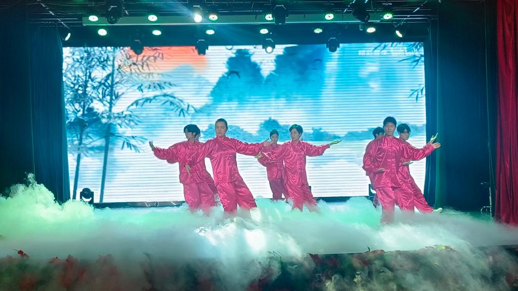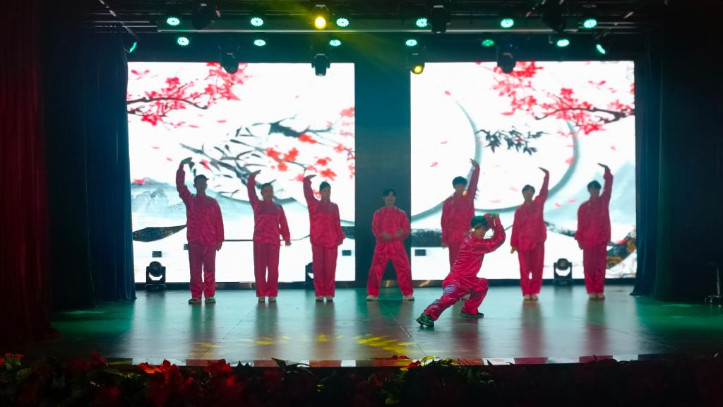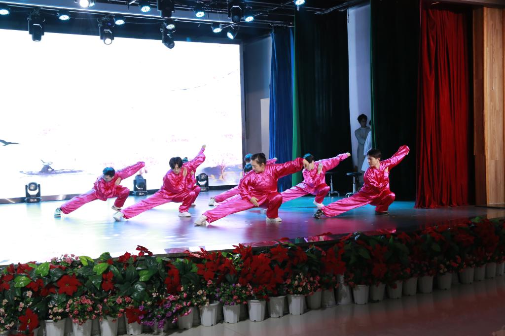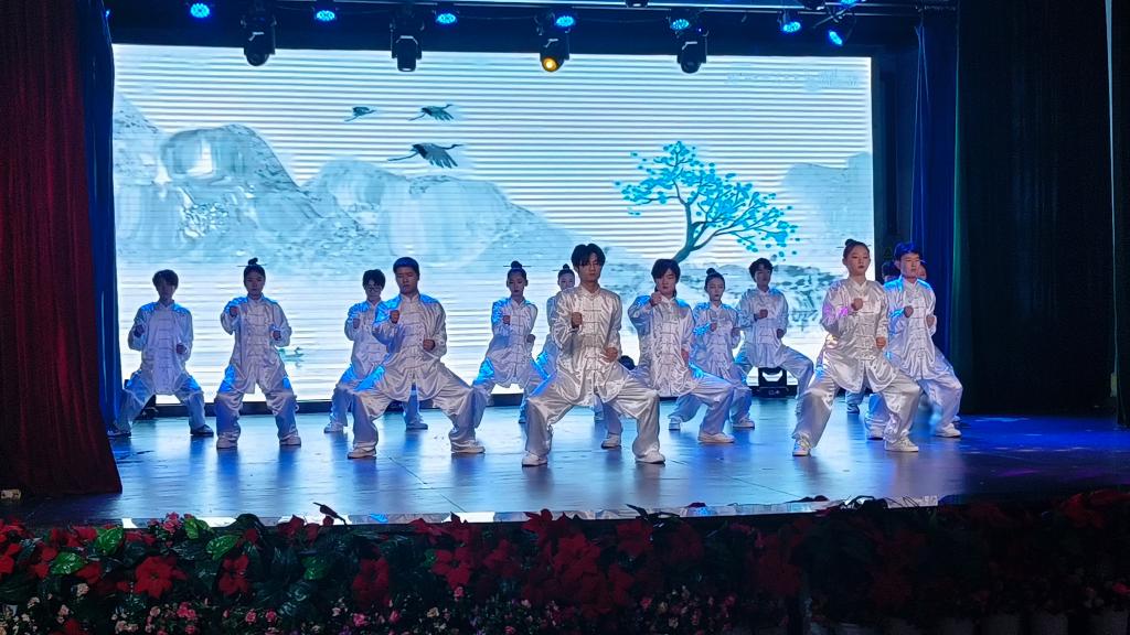 太极拳表演《太极禅境》中,学生们的动作流畅自然,将太极拳的阴阳平衡、动静结合理念演绎得淋漓尽致,仿佛在一招一式间诉说着中医文化中人与自然和谐相处的哲学智慧。