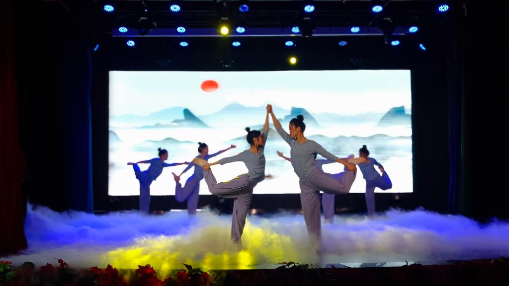 在柔韧性展示环节《柔影灵动》中,学生们通过高难度的瑜伽动作,将中医养生与运动康复完美融合,诠释了中医“治未病”理念与现代运动康复理念的和谐共生。