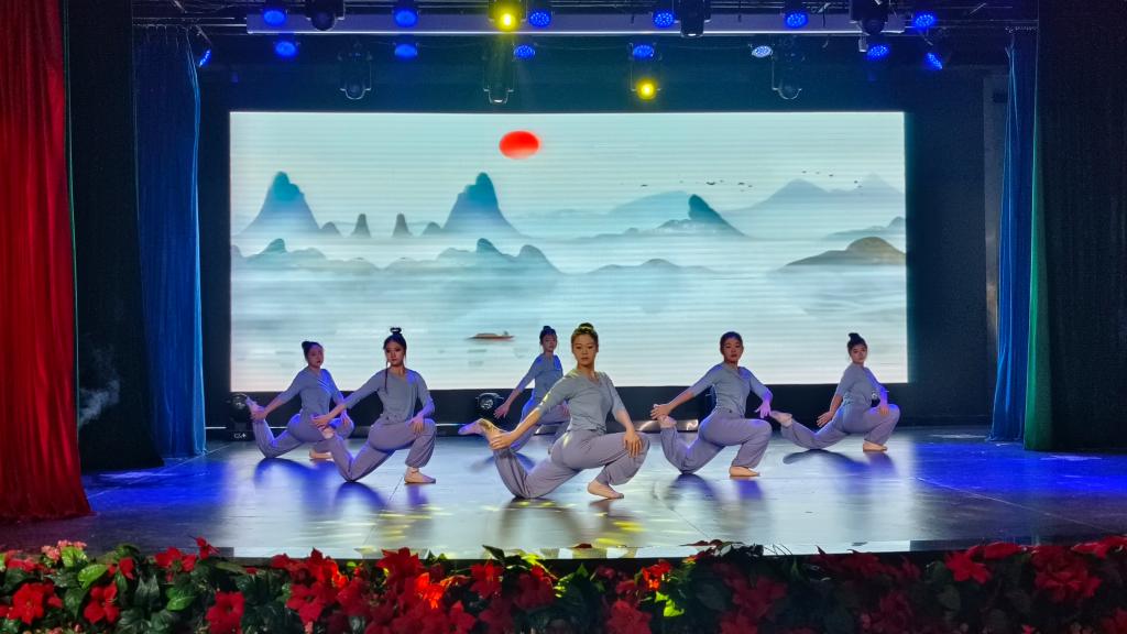 伴随着悠扬的古琴声,学生们身着传统服饰,以八段锦表演《锦韵流芳》拉开了比赛序幕。八段锦的柔和连贯,每一式每一划都蕴含着中医文化,表演者的动作整齐划一,完美展现了八段锦的精髓,将古老的养生智慧在现代舞台上精彩绽放。