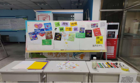 现场布置温馨而富有艺术感,五彩斑斓的纸条以及各类创造工具整齐摆放,为同学们提供了丰富的创作素材。活动伊始,现场引导员详细介绍了拼贴诗的起源、特点与创作方法,让初次接触的同学也能迅速掌握要领。在热烈的掌声中,创意的火花就此点燃,同学们迫不及待地投入到这场文字的奇妙之旅中。