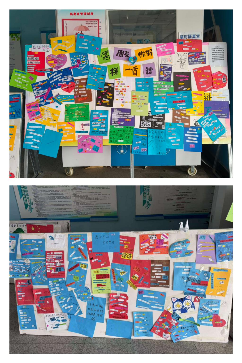 随着时间的推移,一幅幅独具匠心的拼贴诗作品逐渐诞生。有的同学将文字排列成花朵的形状,搭配上春日元素的词句,生动展现了春天的蓬勃生机;有的同学则以梦想为主题,用励志的话语和充满动感的排版,传递出追逐梦想的坚定信念;还有的同学从校园生活的点滴入手,创作出充满青春记忆与校园情怀的诗篇,引发了现场同学们的强烈共鸣。