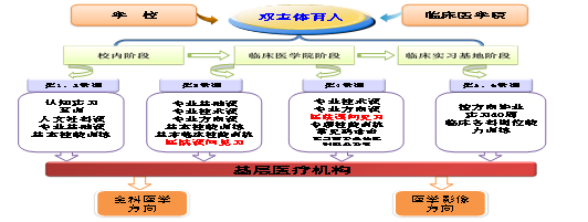 “分方向培养”根据市场调研分析和专业建设指导委员会共同论证,结合基层紧缺型人才的需要,设定全科医学和医学影像两个方向进行培养,拓展其专业技能和就业能力。