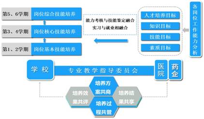 中药学专业与医疗机构、药企专家等组建了专业教学指导委员会,搭建一个校院企互惠多赢的平台。校院企共同制定人才培养方案、构建课程体系、组建教学团队、共建实训基地,实现“培养方案共商,培养过程共管,培养效果共评,培养结果共享”,最终实现人才校院企共育中药学专业人才。